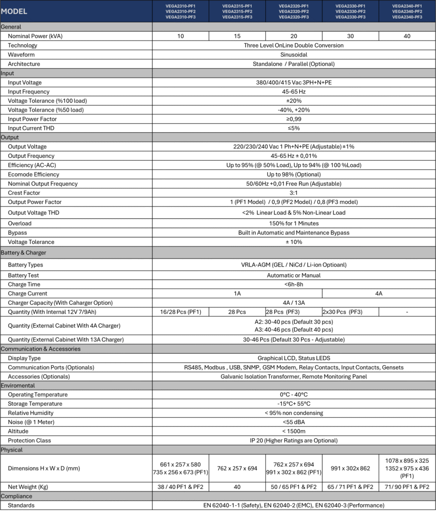 3/1 Phase Online UPS 10-40kVA - VEGA 2000 Series