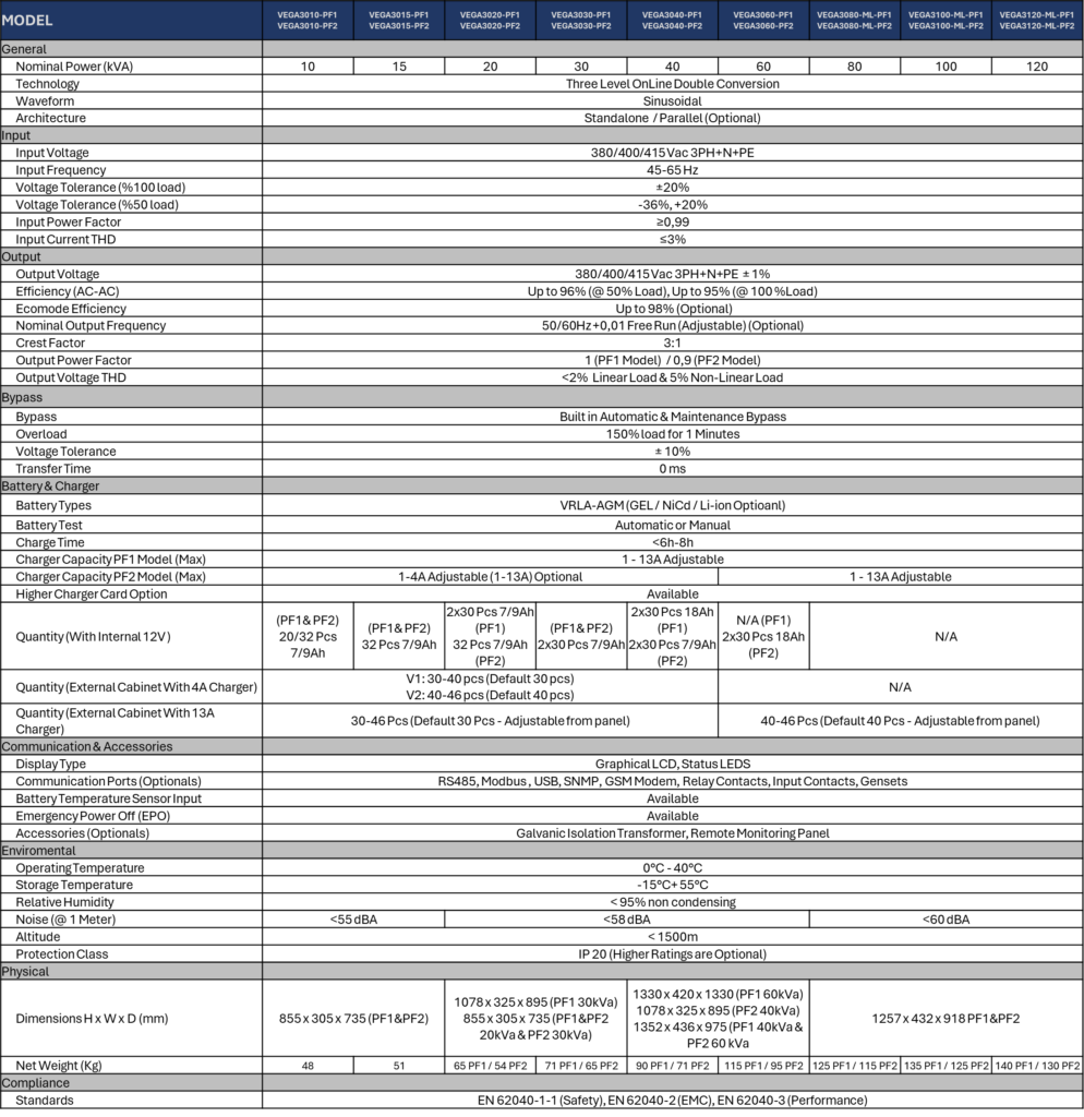 Three Phase Online UPS 10-120kVA | VEGA 3000 Series