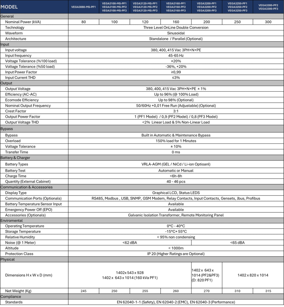 Three Phase Online UPS 80-300kVA | VEGA 3000 Series